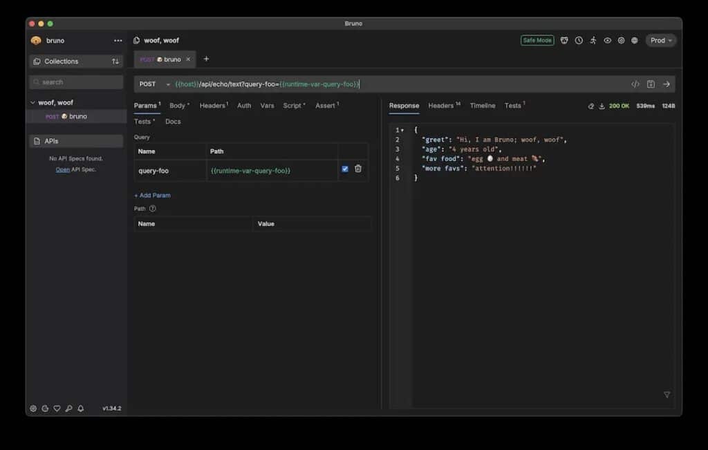 - Not a “platform”. If you need managed monitors, hosted mocks, public doc portals, Slack/webhook integrations, etc., Bruno doesn’t aim to compete there.
