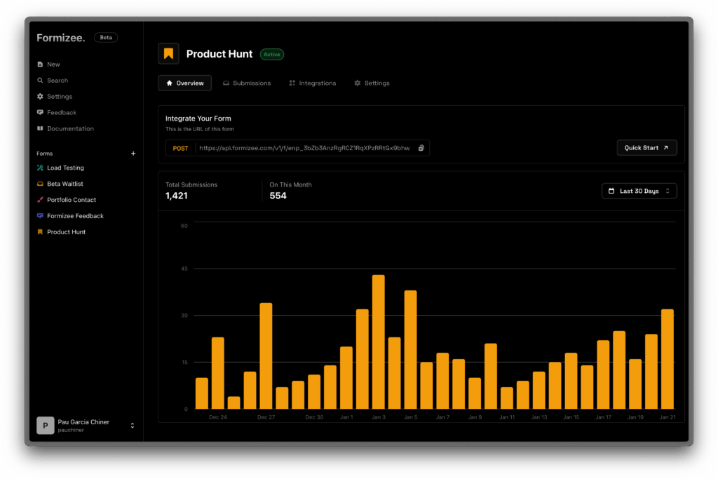 Formizee describes itself as “the forms platform for developers.” That’s not just branding. The project focuses on easy integration with virtually any website or app—plain HTML pages, modern frameworks, or decoupled frontends—without requiring you to build your own submission pipeline from scratch (validation, storage, notifications, and metrics).