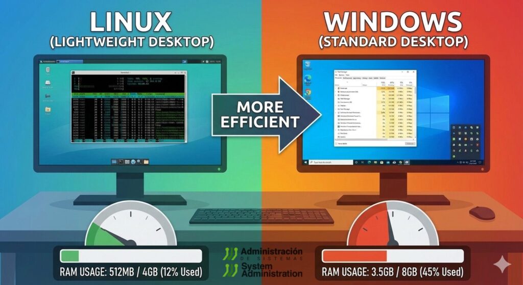 This doesn’t mean “Linux always uses little RAM.” It means it can — if you choose a lighter stack and don’t pile on background services.